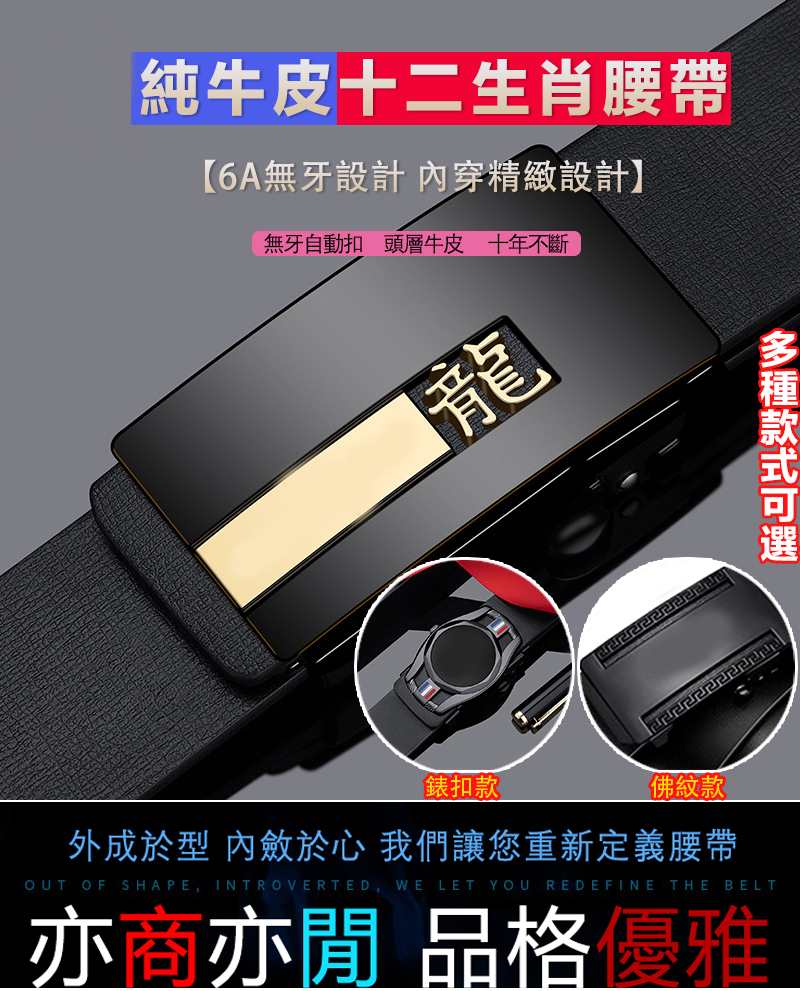 🐎安普里保羅 👍🏻十二生肖男士真皮腰帶✅6A無牙技術✅無牙自動扣 ✅輕薄設計!商務百搭休閒